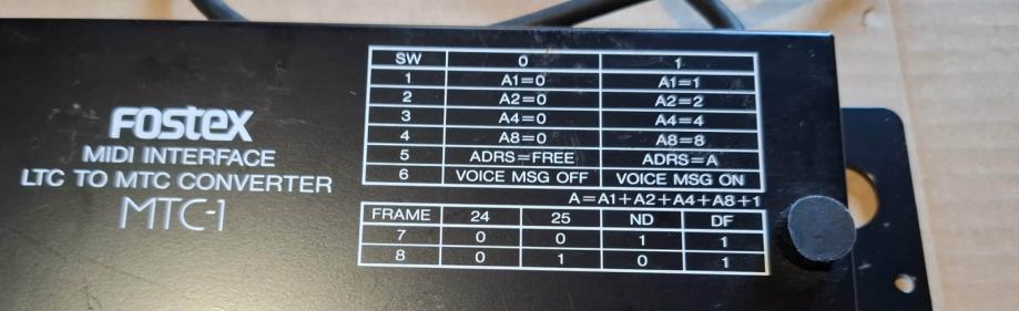 Finally, there are eight switches, termed Mode Set, arranged in a small block. These set the following: MIDI channel to receive on (switches 1-4), adherence to the set MIDI channel or acceptance of data on any channel (switch 5), acknowledgement of remote control commands from MIDI event messages (switch 6) and the SMPTE frame rate (switches 7 and 8).