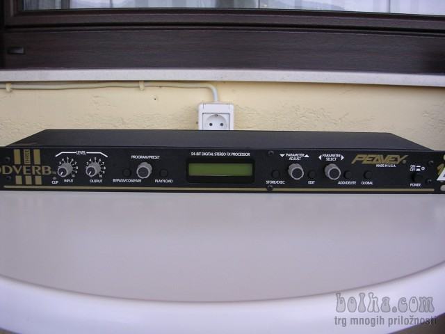 Prodam vrhunski,(nerabljen) PEAVEY - Addverb III(three) 24-bitni stereo efekt procesor.Ima novo spominsko baterijo,ki se pri vklopu polni.Zraven tudi originalni adapter.