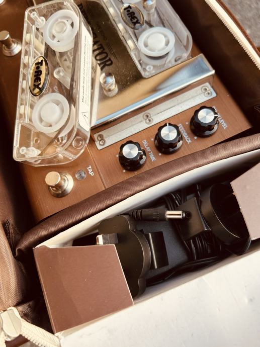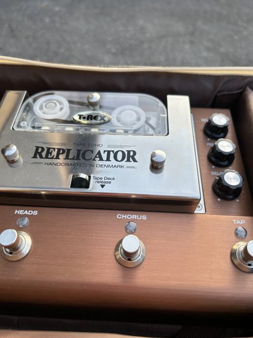 REPLICATOR - analogni tape delay, multihead, tap tempo, z dodatno tape kaseto in setom za čiščenje, brezhiben, v originalnem usnjenem kovčku in originalnimi papirji in navodili. Vse original, kot novo. Vrhunska toplina zvoka. Ročno narejen na Danskem.