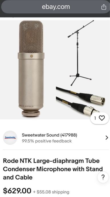 Cevni kondenzatorski mikrofon z veliko membrano RODE NTK (Made in Australia),