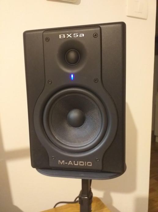 Odlično ohranjeni dvosistemski aktivni studijski monitorji. 5" basovec, 1" visokotonec, 30W HF, 40W LF, magnetna zaščita, XLR in jack vhod, 56Hz-22kHz.