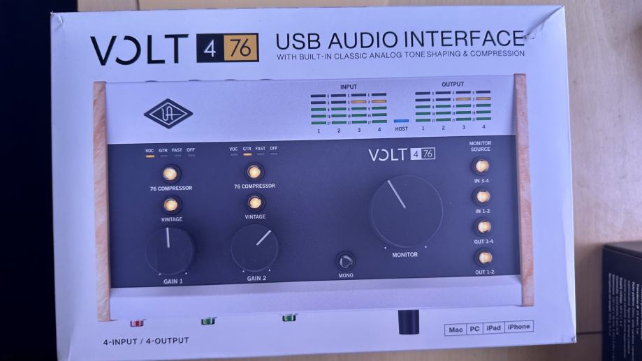 Prodajam odlično ohranjen Universal Audio Volt 476 – profesionalni 4-kanalni USB-C audio vmesnik z legendarnimi UA predojačevalci in vgrajenim 76 kompresorjem (navdihnjen po UA 1176).