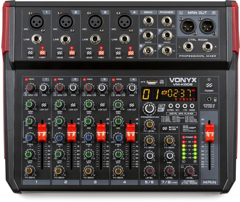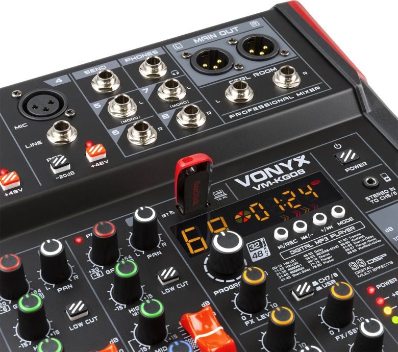 8x Microphone-/line vhodov (Combi XLR/Jack)