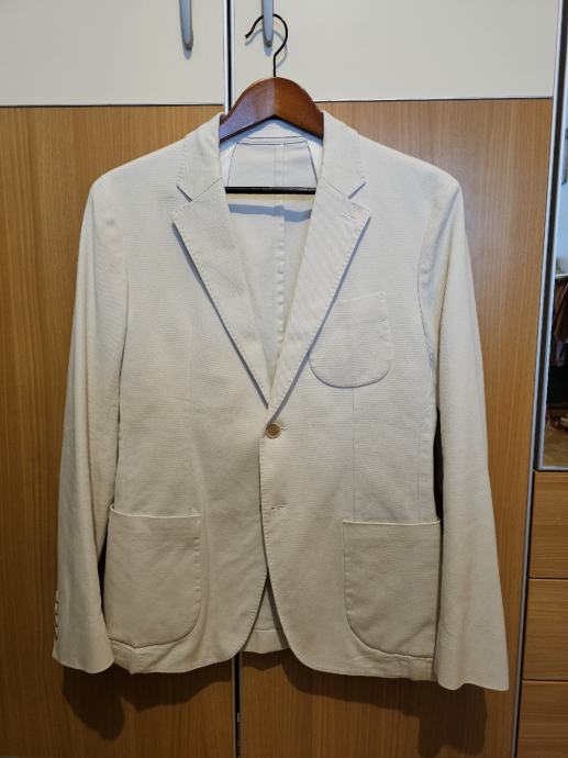 Prodam samo 3x nošen moški suknjič. Prodam, ker mi je premajhen. Barva je med belo in krem.