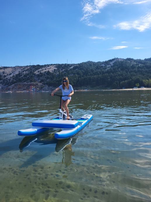 Odlicna rekreacija na vodi. Kolesarite kot po suhem na dveh SUP ih. Sestavljivo kot SUP, hitrost visja kot pri SUP u.