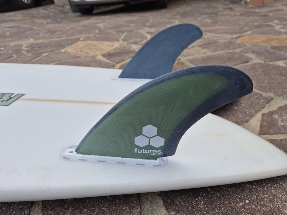 Prodam fish surf dilo s fini kupljeno lani jeseni. V vodi je bila vsega skupaj 5-krat. Mere: 5'6 x 20 1/2 x 2 3/8, 31,5 litra. Fini: Futures Twin Fiberglass BMT. Nova je stala 600eur.