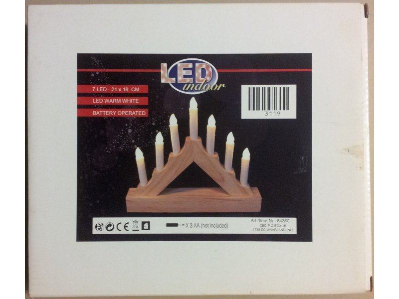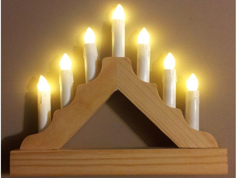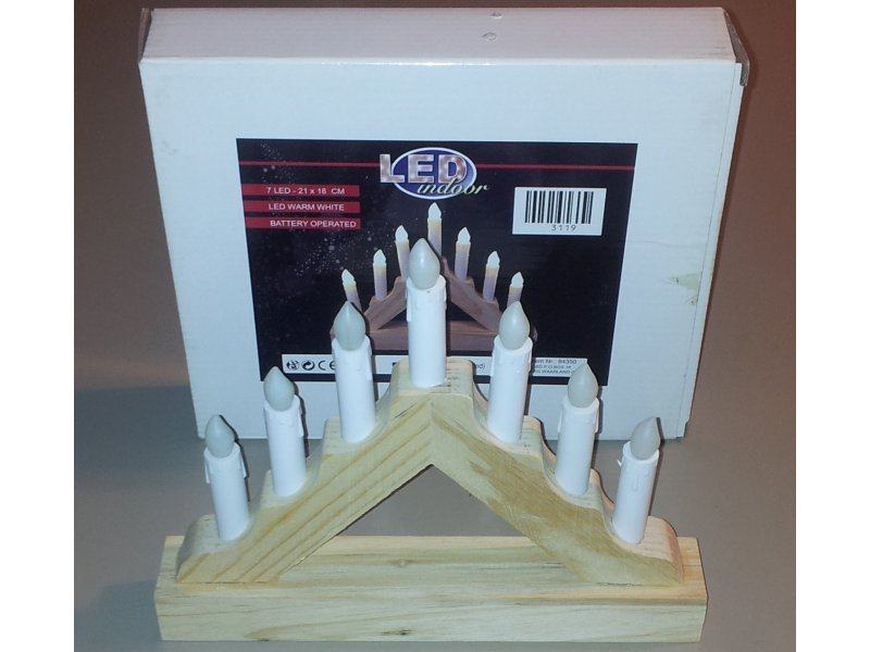 7 LED svečk na lesenem podstavku, 3 baterije AA 1.5V - NOVO,nerabljeno