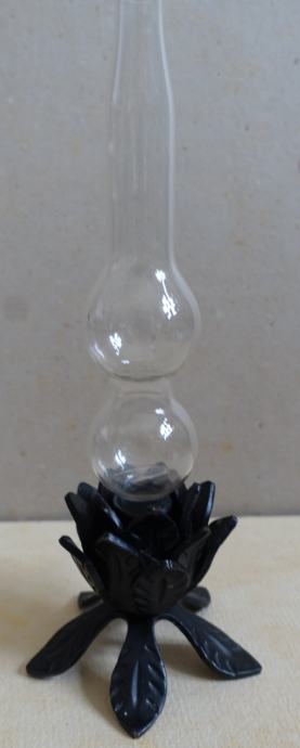 Spodnji del ima obliko rožice, kovan. Kroparski stil, nisem pa prepričana, da je original ker nima nobene nalepke.
