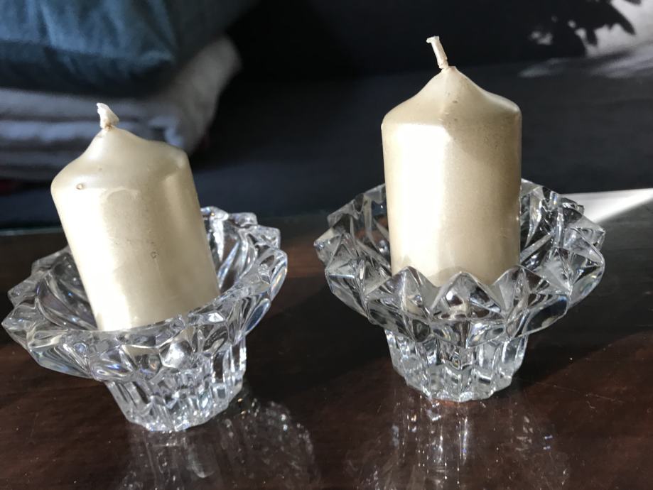 Prodam dva enaka kristalna svečnika z zlatima svečama.