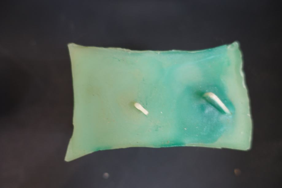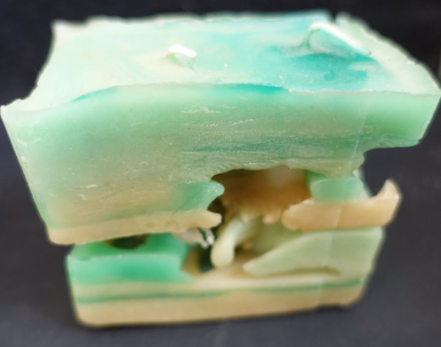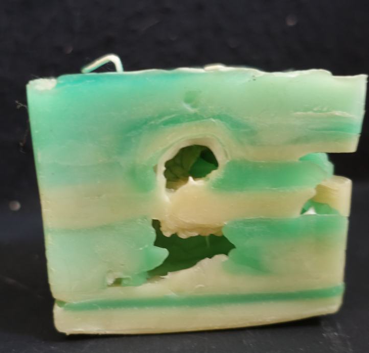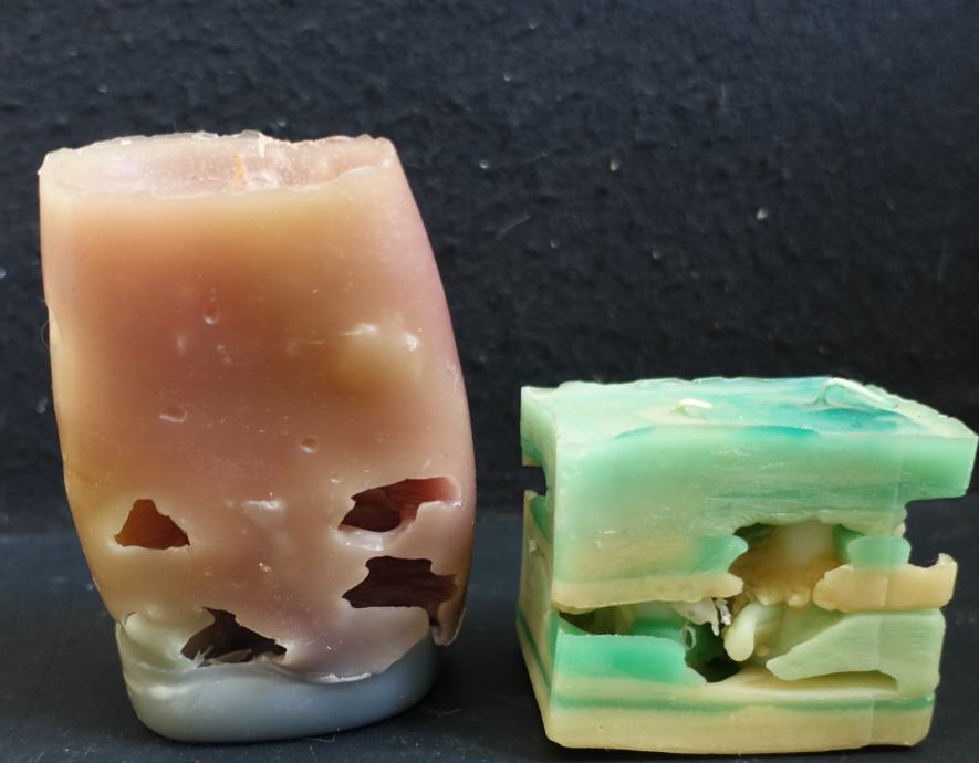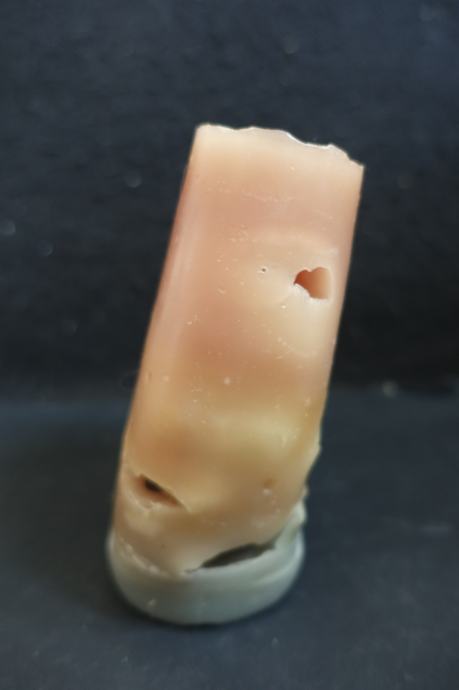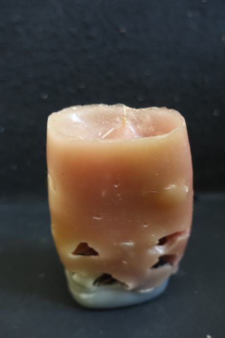 Rjava je spodaj ovalna oblika 8 x 6,5 cm. Visoka je 13 cm. Če jo pogledate od strani je precej nagnjena. Možno je, da je bila bolj ravna in se je zaradi toplote nagnila.