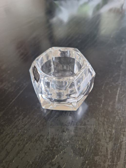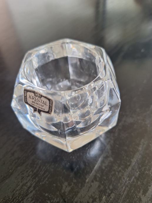 Prodam starejši kristalni svečnik, okrogle oblike, visok 6,5 cm, debelo steklo in zato zelo stabilen; premer 5 cm. Več info. na tel. 031 392 195 Nana