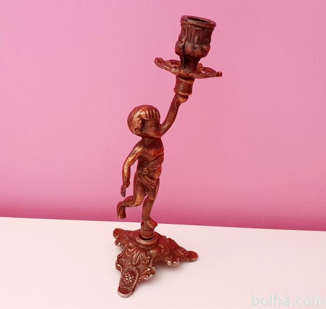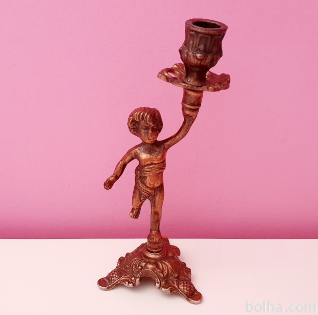 Prodam medeninast svečnik v upodobitvi fantka, ki nosi baklo, višine 24cm. Svečnik je odlično ohranjen in zelo lep dekorativni predmet.