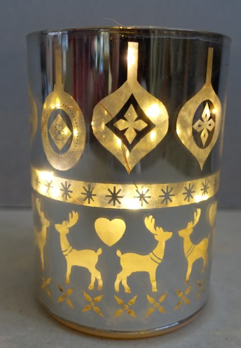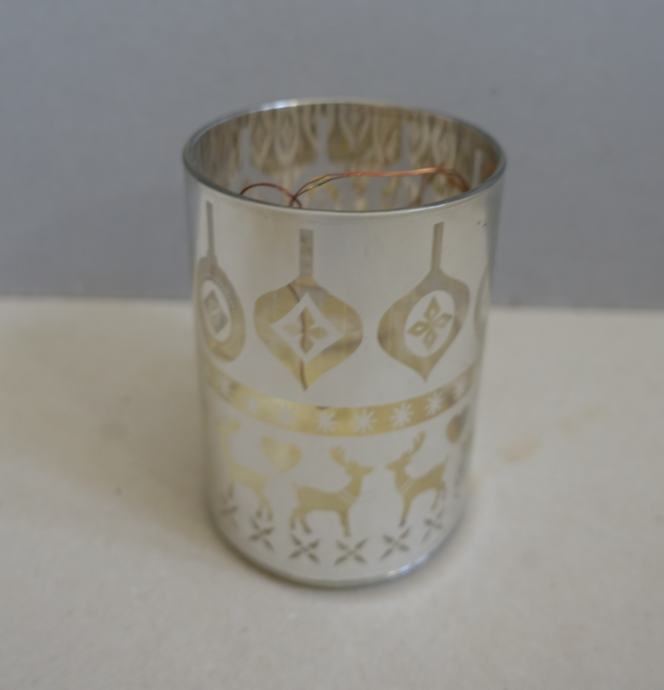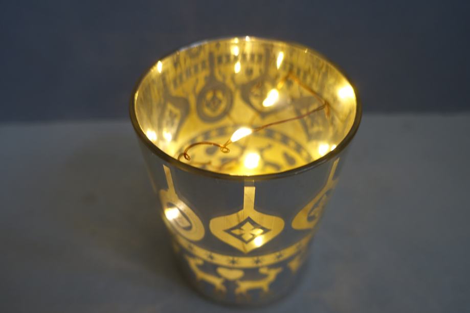 Zunaj srebrn z vzorcem, kozarčku žička z led lučkami.