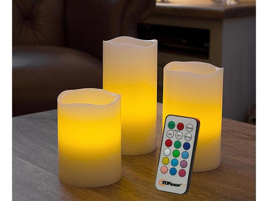 Sveče imajo 12 barv, ki jih lahko nastavite ločeno ali izberete funkcijo njihovega gladkega spreminjanja. Imajo tudi 4 in 8 urni časovnik, zahvaljujoč kateremu se sveče samodejno ugasnejo po preteku izbranega časa.V