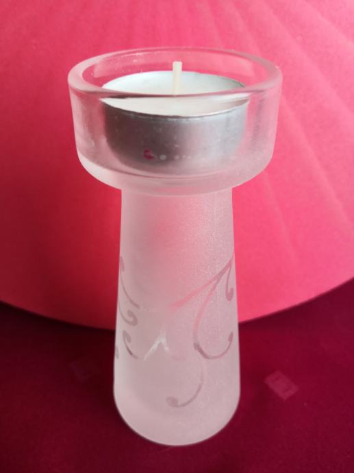 Prodam steklen svečnik iz brušenega stekla z lepim vzorcem. Višina svečnika 12,5 cm. Lepo darilo. Pošljem tudi po pošti.