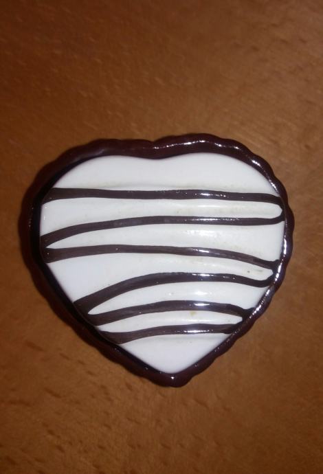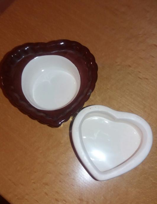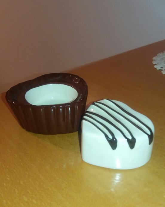 Lep, nepoškodovan keramični dekorativni svečnik v obliki srčka kot tortica za čajno svečko, primerno za darilo.