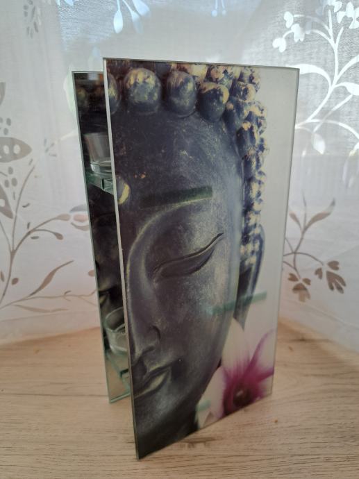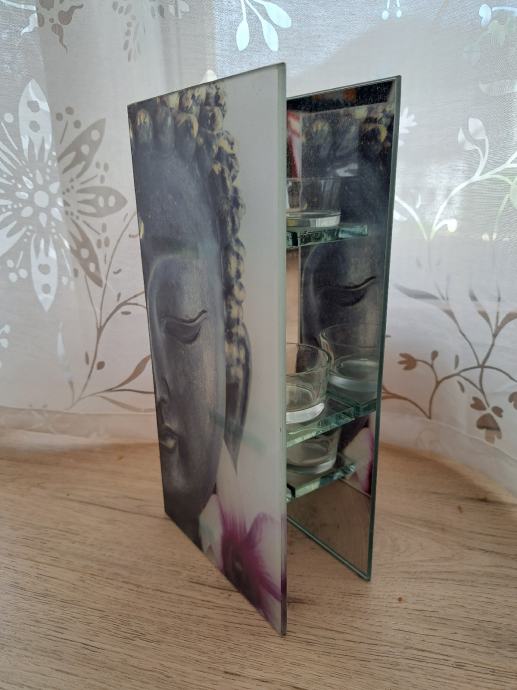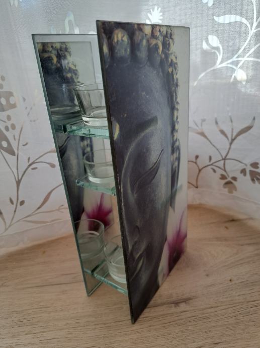 Prodam svečnik z motivom bude za 3 svečke, v treh nivojih.
