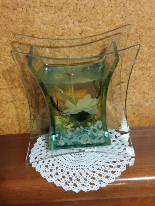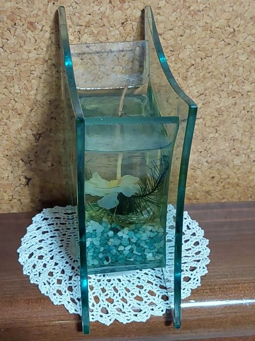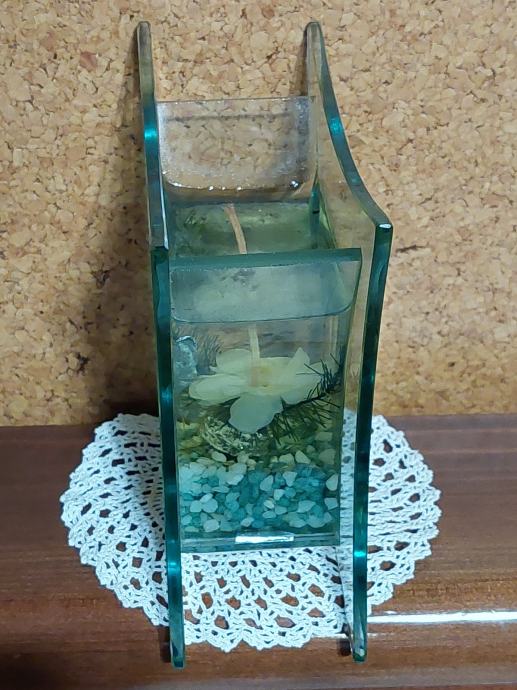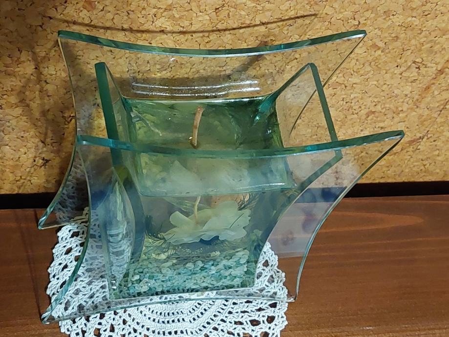 Steklen svečnik Š= 12 cm ,V=13 cm