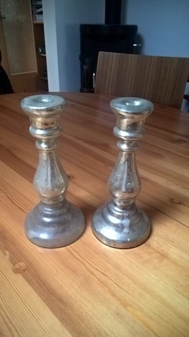 Prodam par steklenih svečnikov, višina 23 cm. Svečnika sta stara približno 100 let. Prevzem v Ljubljani.
