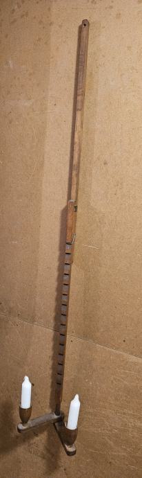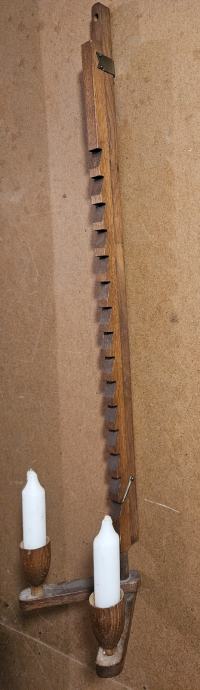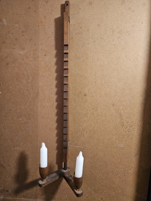 Ugodno prodamo leseni stenski svečnik (vintage stojalo za sveče), ki se lahko raztegne do 150cm. Smo ga našli na podstrešju v stari hiši, in po mojem, nikoli ne bil uporabljen, je samo stal in prah nabiral.