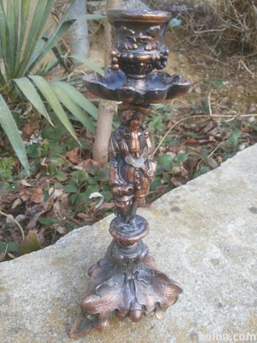 - na voljo je težji starinski svečnik za eno svečo z popravljeno nogo(manjka),- 19 evr,