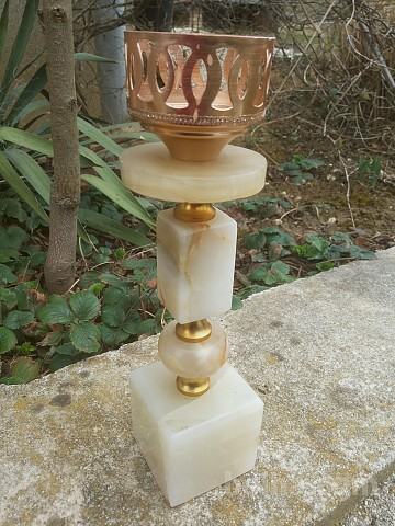 na voljo je starejši svečnik - onix alabaster?,SVEČA JE STALJENA - ZARADI VROČINE !! - 19,99 evr,