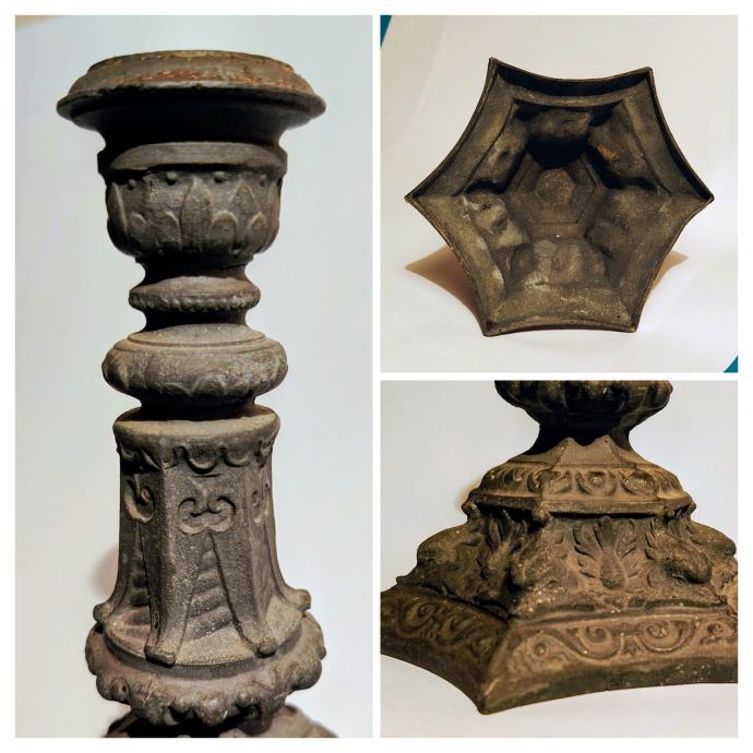 SVEČNIK IZ 19. STOLETJA Z LEPIMI DETAJLI, VISOK 19 cm, TEŽA 800 g,