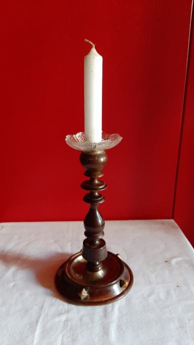 Lesen svečnik s steklenim podstavkom, star 90-100 let, lepo ohranjen, cena 40 eur, info 040 225 001