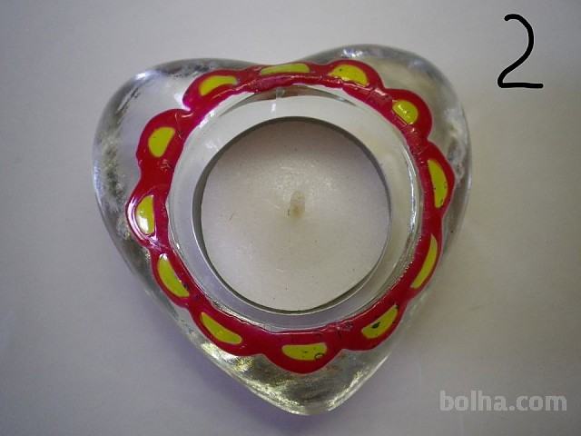 SVEČNIK ZA ČAJNO LUČKO NAS SLIKI, STEKLEN, V OBLIKI SRCA