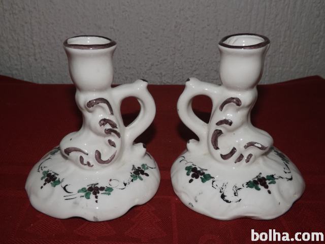 Prodaja se par keramičnih unikatnih svečnikov, ročna izdelava in poslikava, iz zasebne zbirke, višine 11cm.