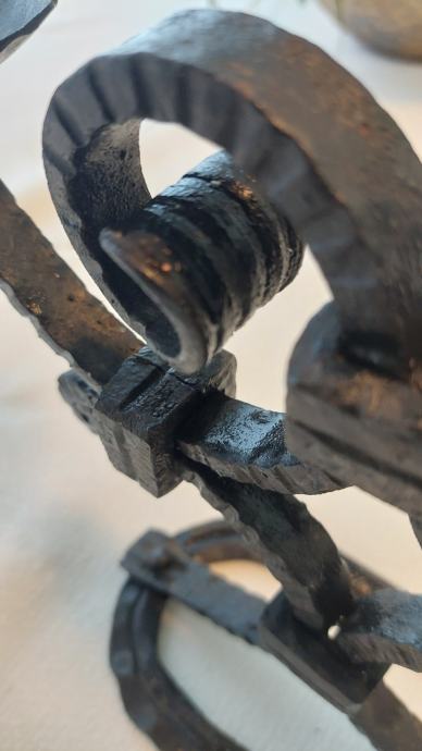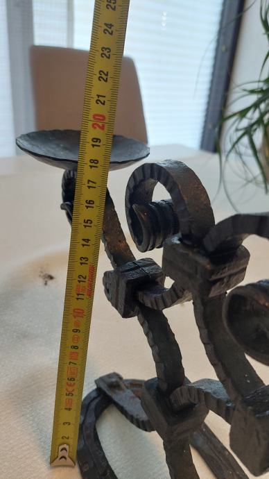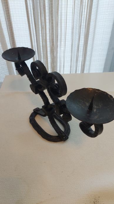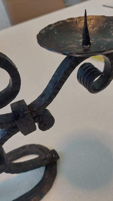 Prodam svečnik - ročno kovano železo. Višina cca 25cm, širina 30cm.