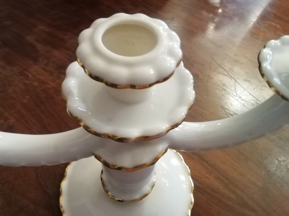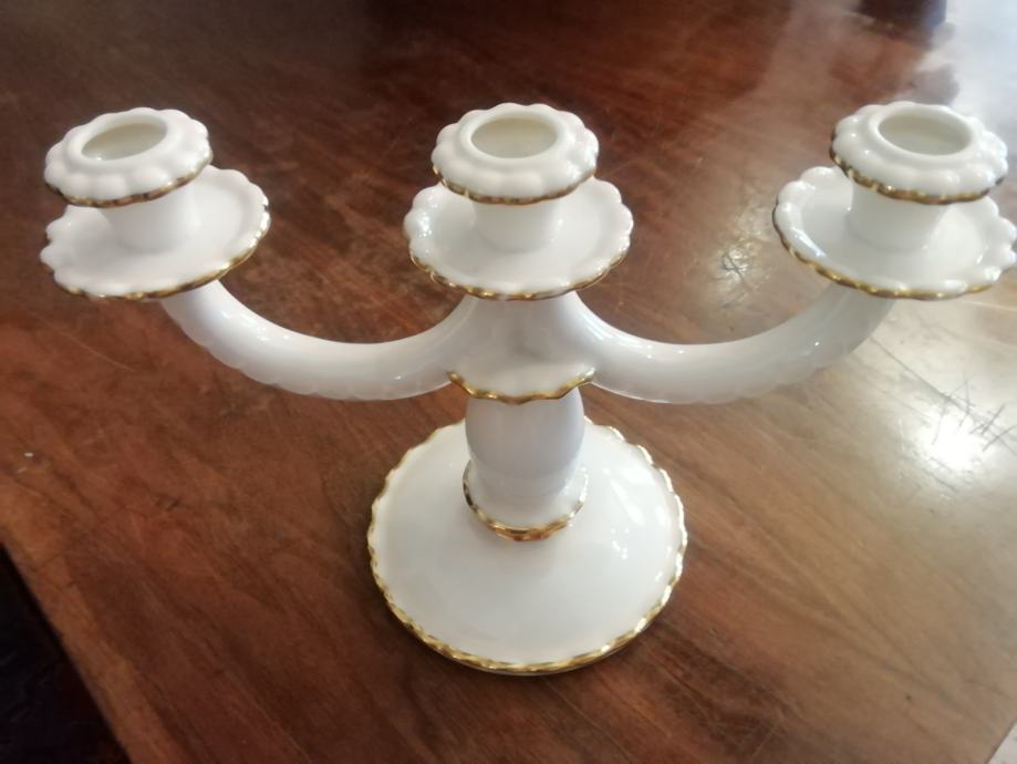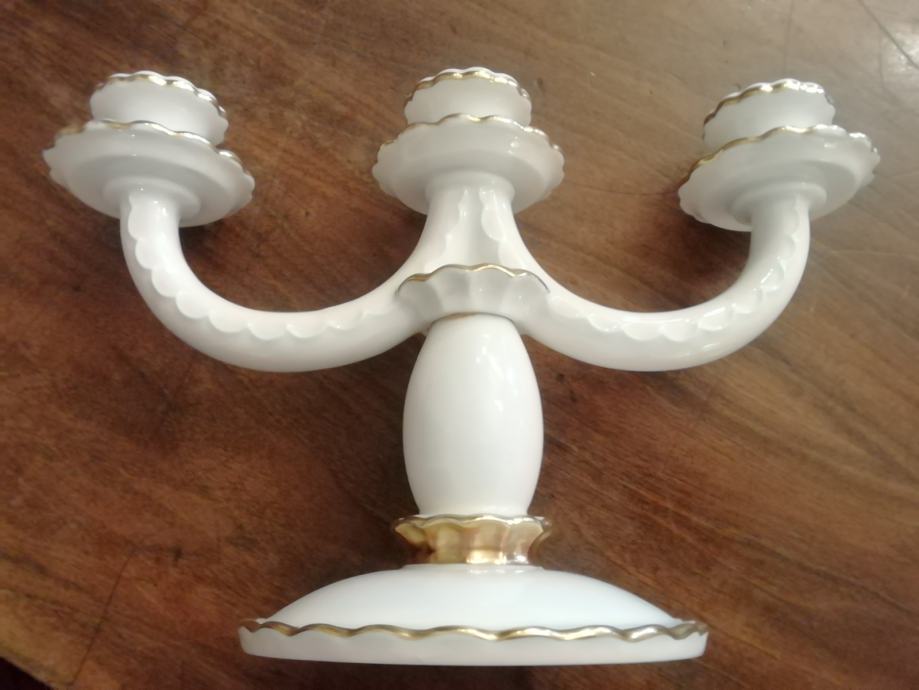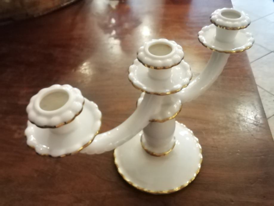 SVEČNIK, star, namizni,3 kraki, krem barve, s staro pozlato, zelo lepo ohranjen, Hutschenreuther, prodam. Tel. 070/271-607.