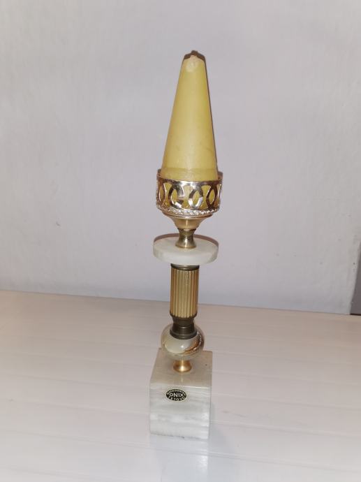 Ugodno prodam starejši svečnik iz onixa viš. 26 cm brez sveče.