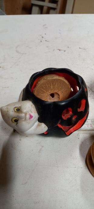Svečnik, podstavek za kuhano jajce iz olive, mlinček za zelišča, keramični svečnik za noč čarovnic in neznan cvet.