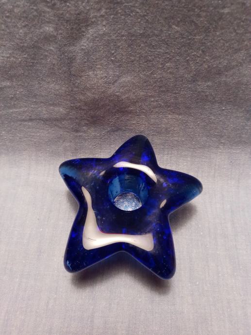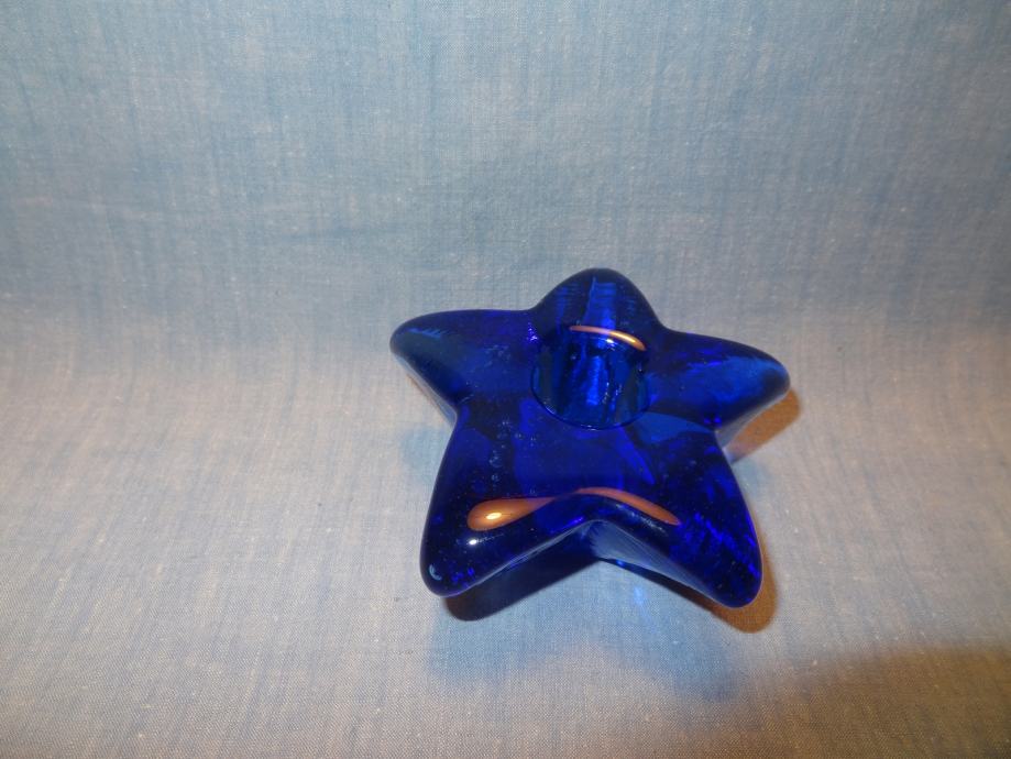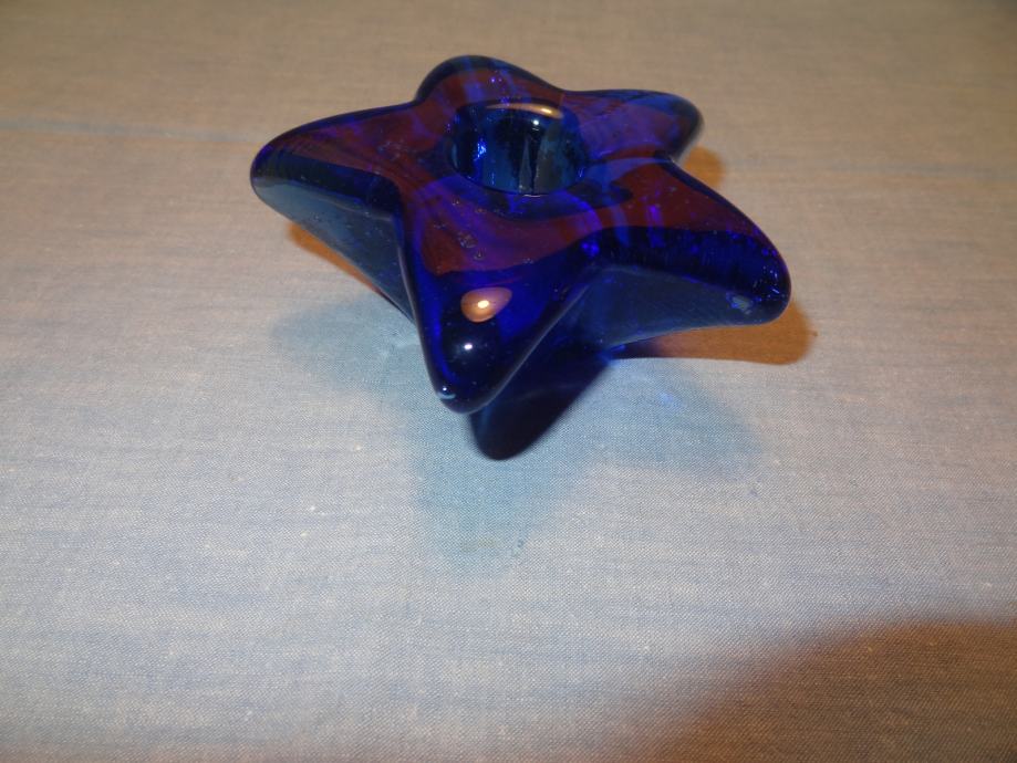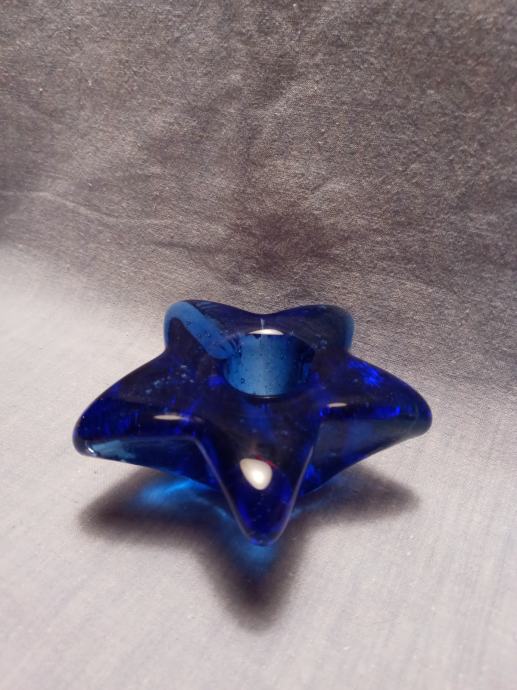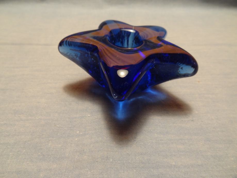 STEKLEN MODER SVEČNIK PREMERA 9,5 cm.