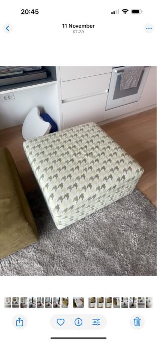 Prodajam rabljena tabureja, ki se odlično poda v vsak dnevni prostor. Kompakten in udoben kos pohištva, ki lahko služi kot dodatno sedišče ali počivalnik za noge. Primeren je tako za moderne kot klasične interierje. En tabure je oblečen v blago zelene barve, drugi pa v blago bele barve z zelenim vzorcem. Dimenzija enega tabureja je 75x75x39 cm (tabureja sta enakih dimenzij).