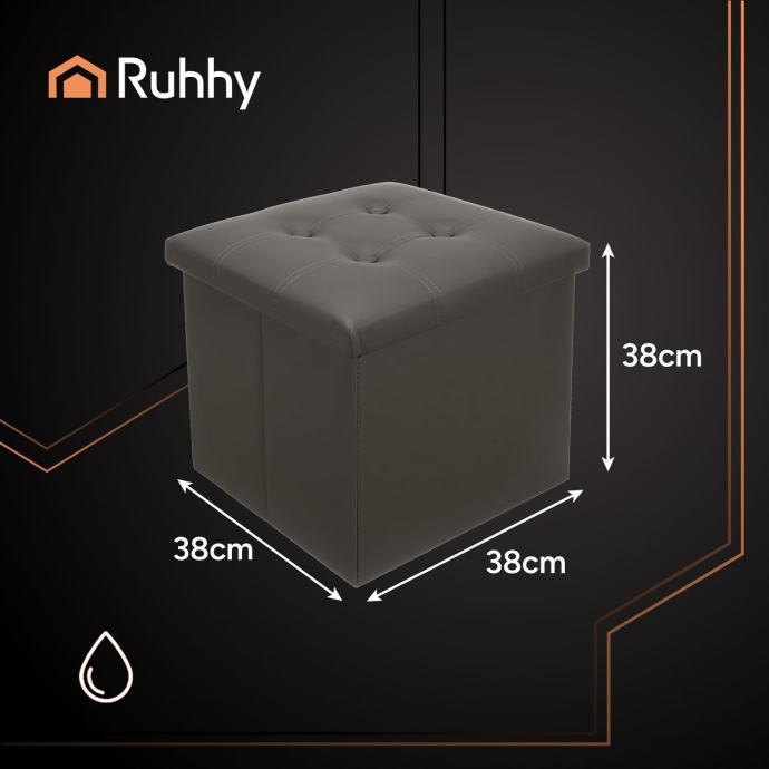Tabure s sedežem RUHHY in shranjevalnim prostorom je praktična in elegantna rešitev za vsako notranjost. Oblazinjena kocka iz vodoodpornega materiala ponuja mehko sedišče in prostoren predal za shranjevanje s prostornino 39 litrov – idealno za shranjevanje majhnih predmetov, igrač ali odej. Zložljiva konstrukcija, visoka kakovost izdelave in maksimalna nosilnost zagotavljajo, da ta tabure združuje funkcionalnost z elegantnim videzom – odlično se bo podal v dnevno sobo, spalnico ali hodnik.