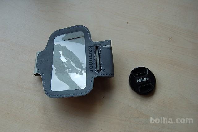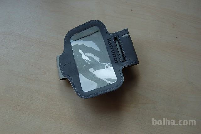 Torbica oziroma etui za telefon, ki se ga pričvrsti na roko, da lahko nemoteno športamo. Je znamke Karimor. Meri 16 cm v dolžino in 9 cm v širino. Sama imam telefon Samsung A5 2017 in je zanj dovolj velik. Ima dve odprtini za slušalke, na vsaki strani po eno. Narejen iz odsevnega materiala.