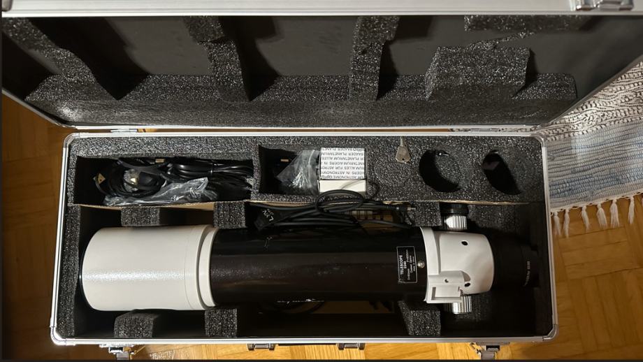 Zaradi neuporabe prodam teleskop z nekaj dodatne opreme, primeren in pripravljen za astrofotografijo. NI VKLJUČENA DIAGONALA in ISKALO, za vizualno opazovanje je potrebno dokupiti tudi okularje.