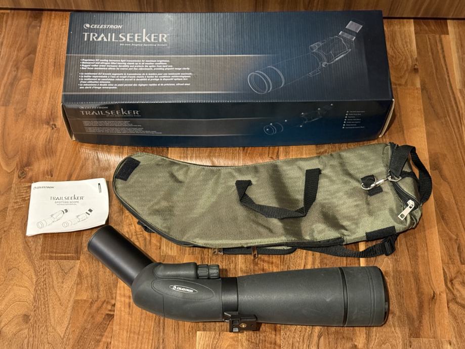 Zaradi prehoda na nov spektiv prodajam svoj Celestron Trailseeker 20-60X80MM z okularjem 45 stopinj. Vse je v res dobrem stanju, leče so čiste in brez prask.
