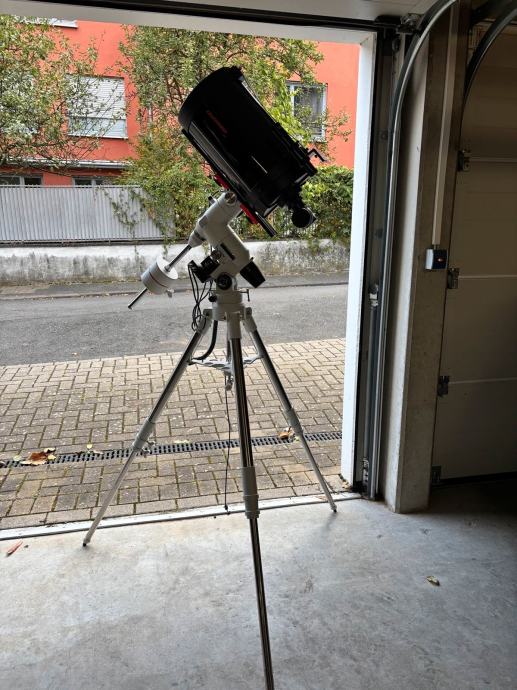 Teleskop Celestron C8 iz zapuščine v odličnem stanju, v paru z Bresser Exos 2, prirejen s sistemom Onstep Goto za enostavno sledenje in aplikacijo Goto with OnStep. Teleskop je opremljen z montažo Losmandy z adapterjem za rebrni rep, zato se lahko uporablja s katero koli montažo za teleskop. Okularji Baader Planetarium 8-24 mm Mark 4 zoom in Morpheus 4,5 mm ter okular TS Optics 32 mm so v popolnem, skoraj novem stanju. Dodatna oprema: