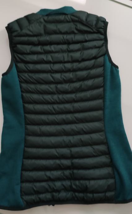 Prodam nikoli nošen ženski brezrokavnik št. XS., temno zelene barve. Kupljen je bil v Italiji, primeren za manjši obseg prsnega koša. Sama nosim št. 36, tega pa komaj zapnem.
