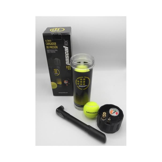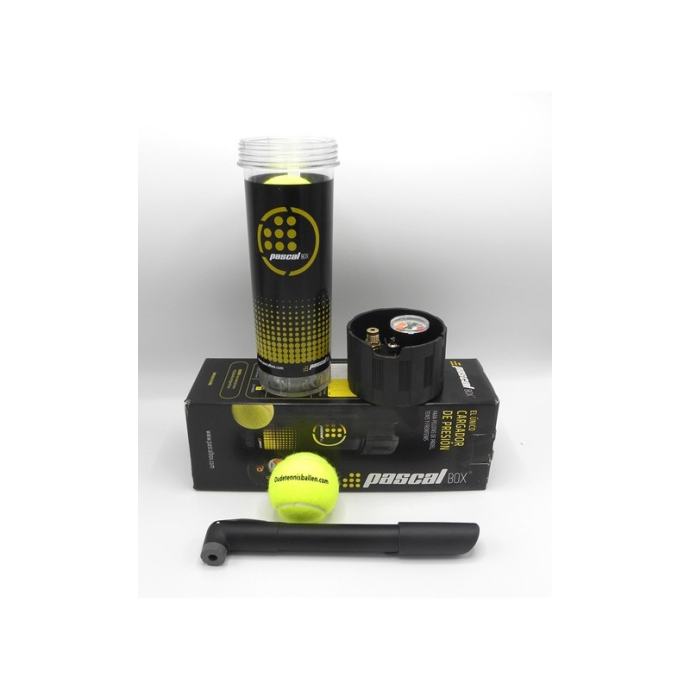 Žogice za TENIS in PADEL tenis vstavimo v napravo Pascal Box, zapremo pokrov , s tlačilko napolnnimo do želenega tlaka in žogice so shranjene do naslednje uporabe.