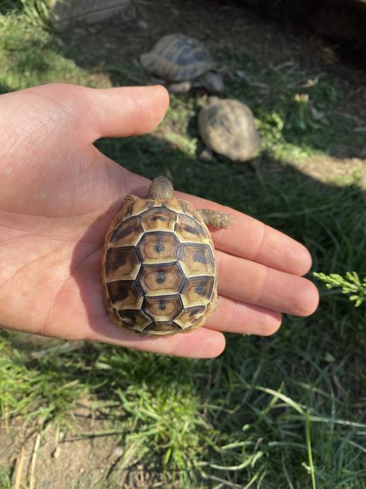 Nov dom išče še zadnjih nekaj izredno lepih želv, starih že skoraj leto dni. Vzrejene so pri meni doma, kjer lahko vidite tudi njihove starše ter nekaj drugih zanimivih želv. Vsaka želva ima svoj FOTO-CITES dokument. Dostava želvice je mogoča skoraj po celi Sloveniji. Pred nakupom želim, da si preberete literaturo kako poskrbeti pravilno za želvico. Četudi so verjetno ene preprostejših hišnih ljubljenčkov, še vseeno potrebujejo nekaj pozornosti in dela. Čez poletje so lahko brez problema zunaj, toploto in svetlobo dobijo od sonca, hranimo jih lahko 1x na dan ali 1x na dva dni, ce je pa ograda dovolj velika pa si bo zelvica tudi sama poiskala hrano in drugega dela z njo nimamo. Osnovna hrana za to vrsto želv je trava, detelja, regrat, hibiskus. Zelenjavo in solato dobijo obcasno za posladek. Poleg dokumenta priložim tudi nekaj kalcija v prahu(ki se posuje po prehrani za pravilno rast oklepa), vlakninastih briket kot obcasen dodatek, ter bon -10% v MrPet-u za nakup opreme in ostalih zadev. Veliko informacij lahko preberete na moji spletni strani http://zelve.net/grska-zelva/ , za vse dodatne informacije pa mi brez problema posljite sms. Pomembno mi je, da zelvice dobijo prijetne domove, kjer bo za njih pravilno poskrbljeno.