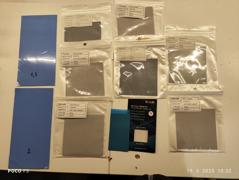 Termalne blazine, padi različnih debelin od 5W/mK do 15