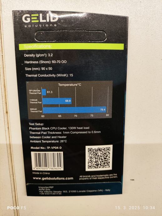Gelid: 1 kos 15W/mK debeline 2mm cena pa 8€