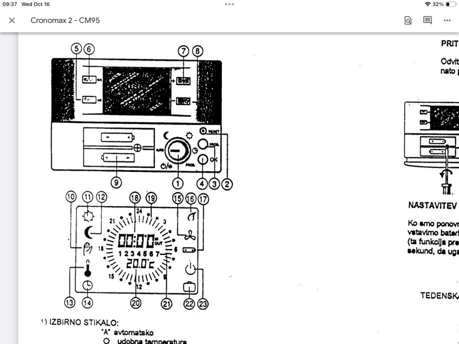 Navodila za Termostat Cronomax CM95 /Radio/ in navodila za žični termostat Cronomax CM 95