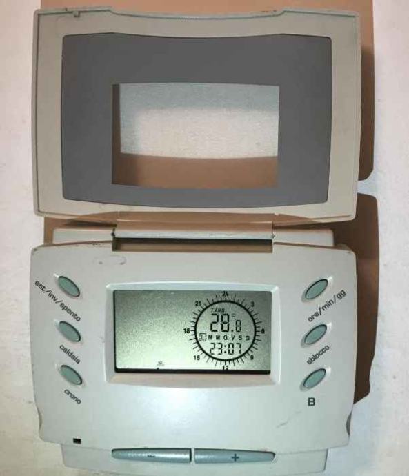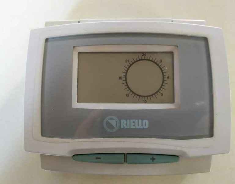 Riello daljinski upravljalnik / krmilna plošča model RC04N, s tedenskimi funkcijami, poleg izvajanja in nadzora Riello kotlov (plinski kotli, varčni kotli, hladilni sistemi, sistem prisilnega prezračevanja itd.). V odličnem stanju, uporabljen zelo malo in popolnoma funkcionalen.