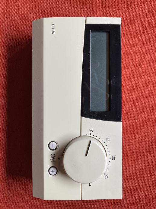Programirljiv temperaturni regulator iRT 30 za plinske kondenzacijske kotle Buderus Logamatic, delovanje v odvisnosti od zunanje ali od notranje temperature, 7 dnevnih preklopnih programov, 70 preklopnih točk na teden, krmiljenje enote za sanitarno vodo. Deluje brezhibno. Tel. 031571440.