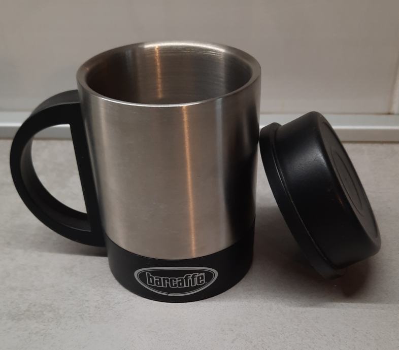 Prodam nov termo lonček Barcaffe, primeren za kavo ali ostale tople napitke. Višina lončka 12 cm, premer lončka 7,7cm, prostornina pa 300 ml. Cena 5 EUR.